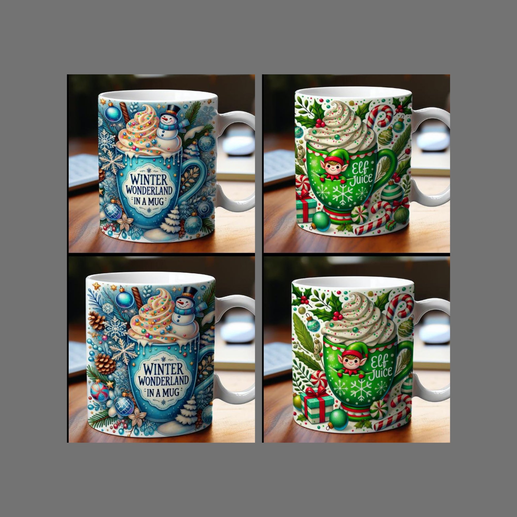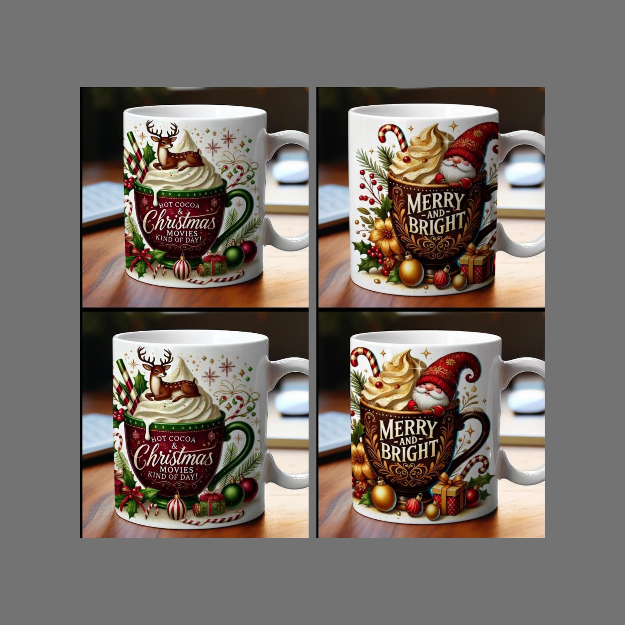 Get your Coffee mugs, select your Christmas design, these cups are 15oz ceramic cups good for your hot coffee or tea.