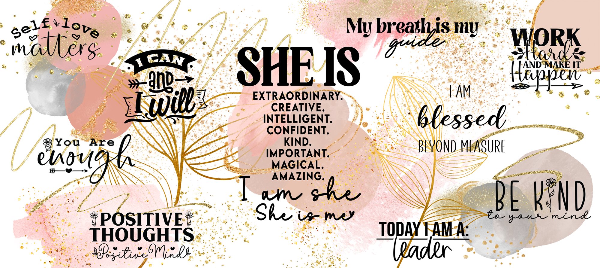 Get your 15oz ceramic mug ready for your coffee, latte or teas. Sublimation design Daily She Is Affirmation coffee mug wrap design: Gold Roses